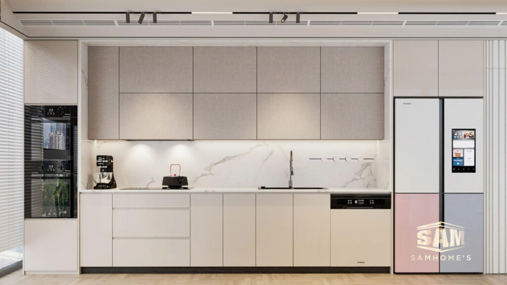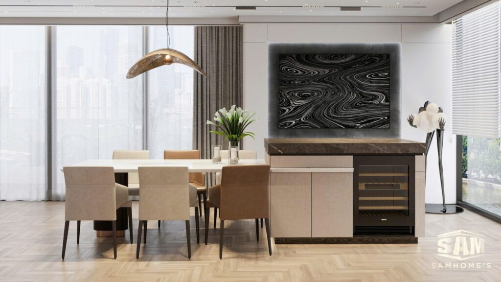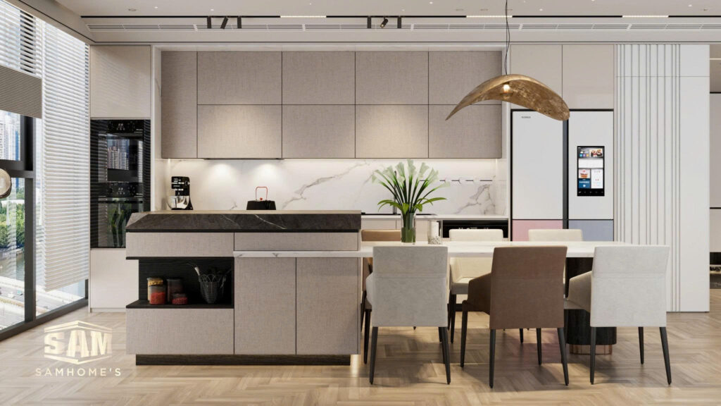 Sở hữu một tổ ấm với tông màu trung tính nhẹ nhàng, điểm tô thêm một vài chậu cây xanh tươi mát, phối hợp cùng chất liệu gỗ ấm áp sẽ tạo cho bạn cảm giác ấm cúng, thanh bình và như được trở về gần hơn với thiên nhiên.