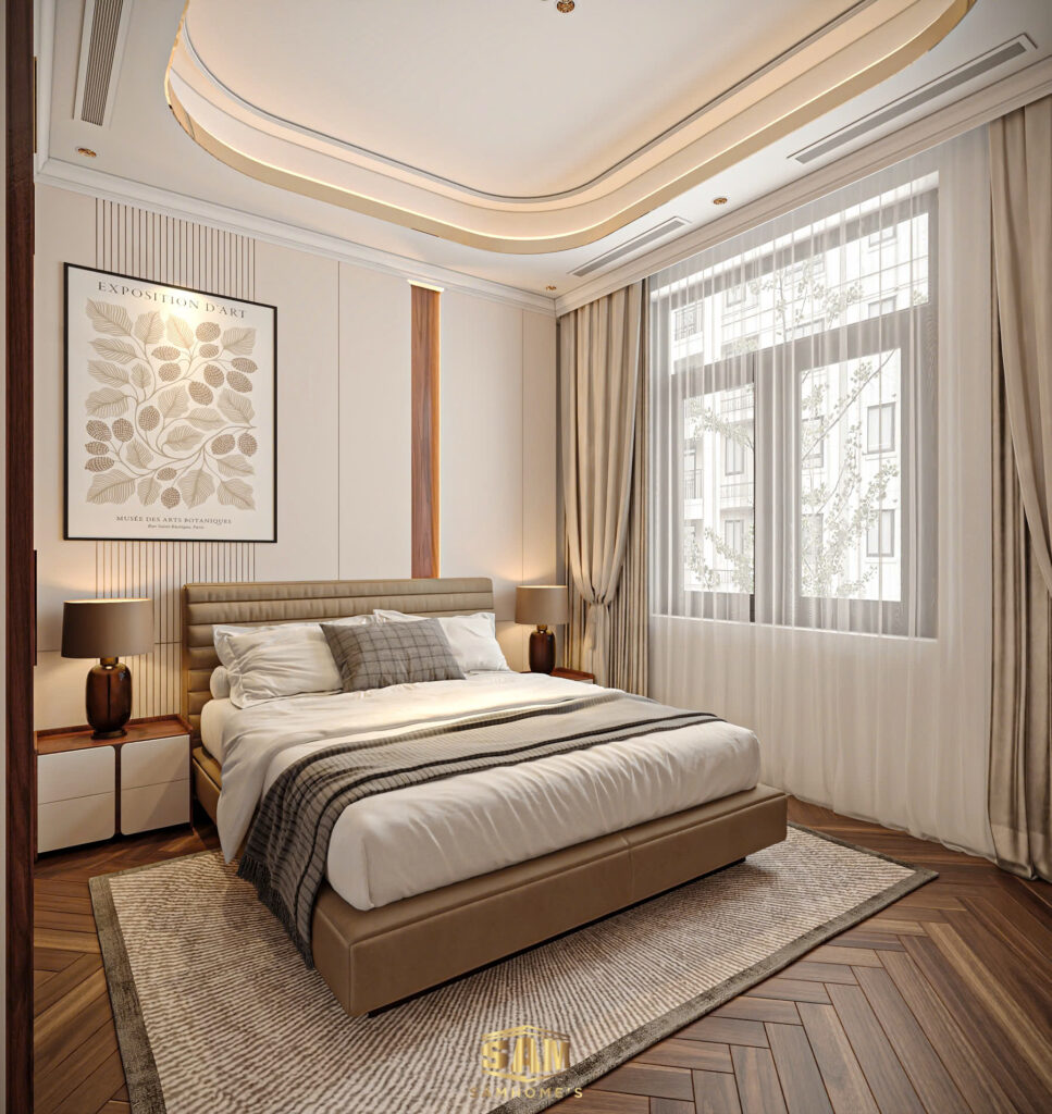 Sở hữu một tổ ấm với tông màu trung tính nhẹ nhàng, điểm tô thêm một vài chậu cây xanh tươi mát, phối hợp cùng chất liệu gỗ ấm áp sẽ tạo cho bạn cảm giác ấm cúng, thanh bình và như được trở về gần hơn với thiên nhiên.